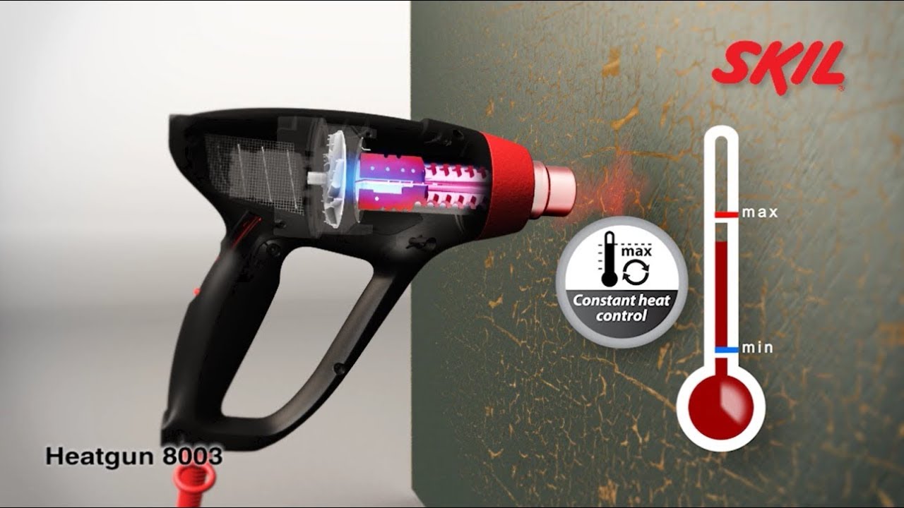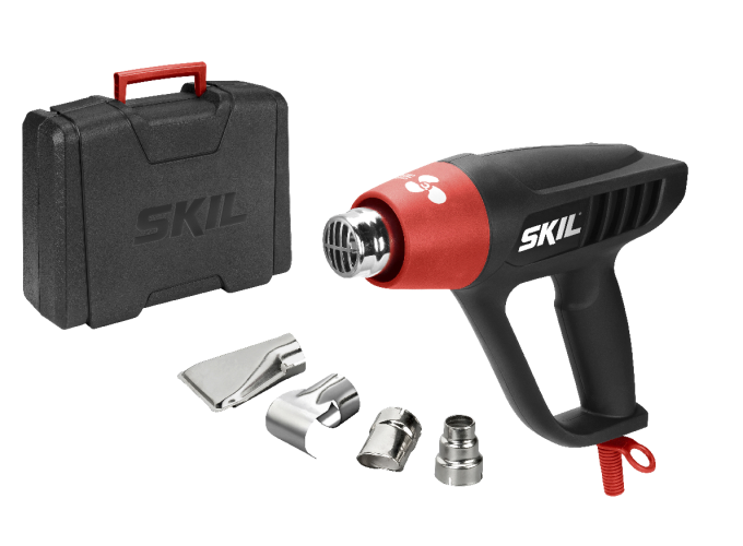 The SKIL 8003 is a powerful 2000W heat gun and is ideal for a wide range of jobs like stripping and drying paint, applying heat-shrink tubes and shaping plastics. This heat gun has three combined temperature and airflow settings, allowing you to match the setting to the task at hand. The constant heat control mechanism prevents the tool from overheating. This heat gun is compatible with the most commonly available heat gun nozzles on the market, so you can always find the right nozzle for the job. This heat gun is supplied in a sturdy case with four nozzles.