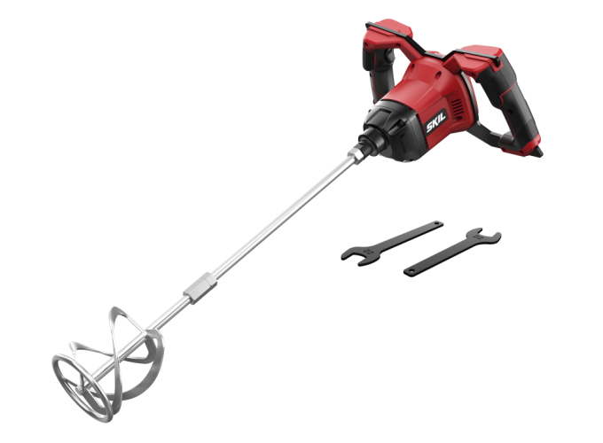 Our SKIL 3171 paddle mixer is a great choice for mixing a variety of materials, such as mortars, paints and adhesives. Its compact and lightweight design limits fatigue during the job. Designed with a 2-handgrip with soft grip, this paddle mixer ensures optimum control. The electronic soft start for a gradual run-up to maximum speed prevents splashing of materials and ensures smoother mixing. To increase the tool’s durability this paddle mixer is designed with aluminium gear housing. You can set your preferred speed with the speed pre-selection wheel. Changing and securing standard mixing paddles is effortless, thanks to the M14 industry-standard tool connection. SKIL 3171 CA is supplied with a 120-mm universal mixing paddle. The battery and charger aren’t included.